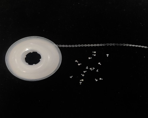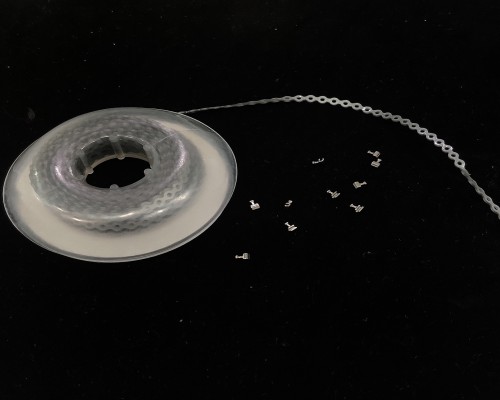 •Crimpable Hook is crimped onto the arch wire in situations where the bracket does not have a hook, or a hook is required at another location to attach elastics, chain, coil springs.